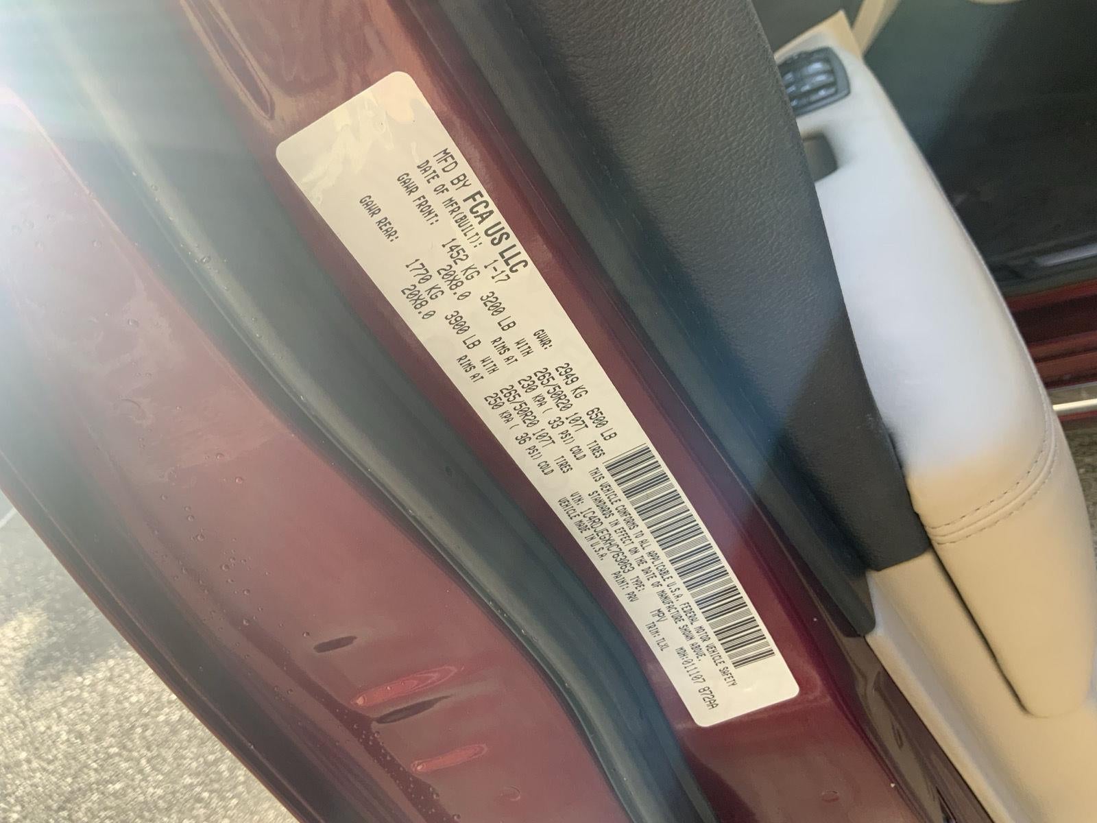 ENGINE: 3.6L V6 24V VVT UPG I W/ESS, TRANSMISSION: 8-SPEED AUTOMATIC (845RE), QUICK ORDER PACKAGE 23J, 3.45 REAR AXLE RATIO, OCTANE RED PEARLCOAT, LT FROST BEIGE/BLACK, LUX LEATHER TRIMMED BUCKET SEATS, GVWR: 6,500 LBS, TECHNOLOGY GROUP, TRAILER TOW & SKID PLATE GROUP, MANUFACTURER'S STATEMENT OF ORIGIN