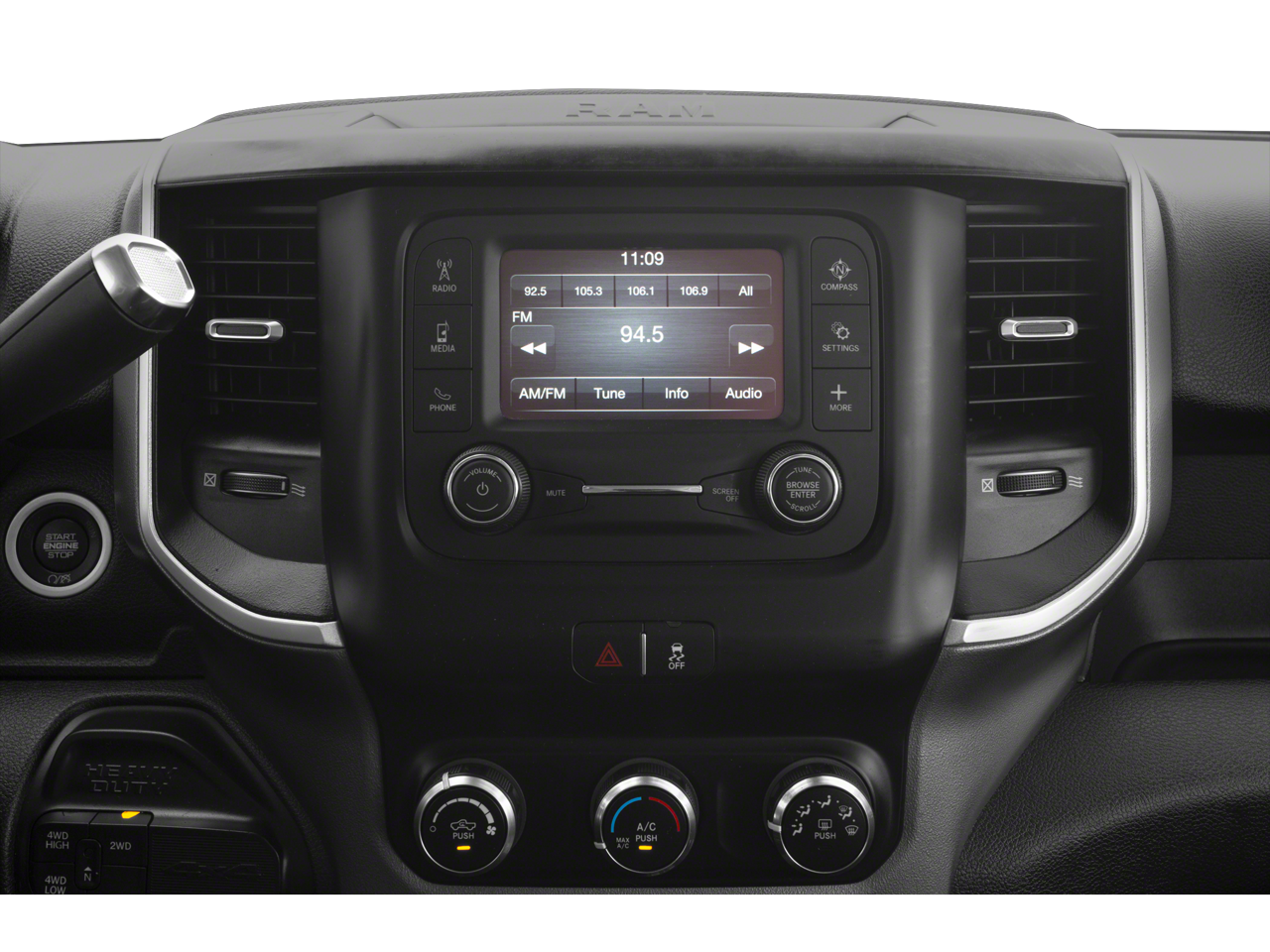 4x4, Back-Up Camera, iPod/MP3 Input, Trailer Hitch, Chrome Wheels MP3 Player, Privacy Glass, Keyless Entry, Child Safety Locks. Ram Big Horn with Bright White Clearcoat exterior and Black interior features a Straight 6 Cylinder Engine with 370 HP at 2800 RPM*.