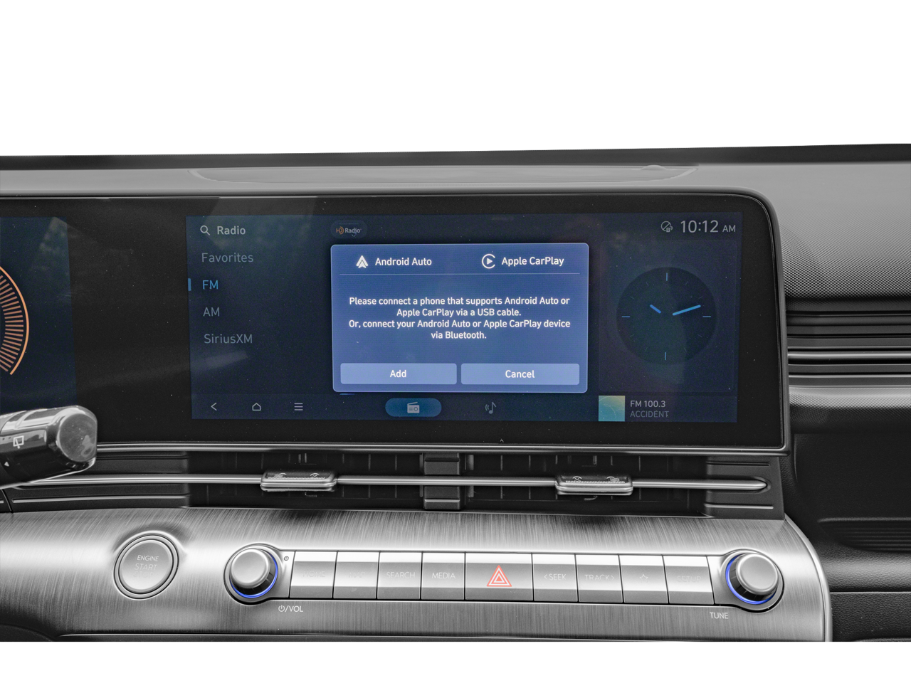 - Radio: AM/FM/SiriusXM/HD Radio Audio System -inc: 12.3" touchscreen audio display, 6 speakers, wireless Android Auto and Apple CarPlay compatibility, Blue Link connected car system, USB connectivity, OTA software updates and steering audio controls (volume up/down, seek up/down, mode)